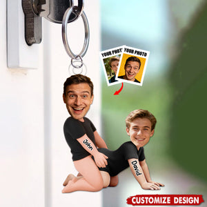 Naughty Personalized Gay Couple Photo Keychain - Gifts For Couple
